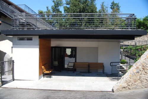 La ampliación cuenta con única planta. Desde la misma se plantea el acceso principal a la residencia, mientras que el acceso del servicio se realiza por el edificio existente. Este módulo de ampliación se realiza con estructura metálica y el revestimiento exterior se realiza con paneles prefabricados de hormigón. Aquí se ubican las salas de visita así como la zona administrativa. Además por aquí es por donde se realiza el acceso principal al edificio.