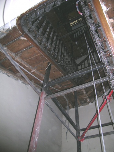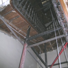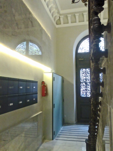 Se procede a la reparación interior tanto de la iluminación como de los revestimientos tanto del portal como de la totalidad del la caja de escaleras.